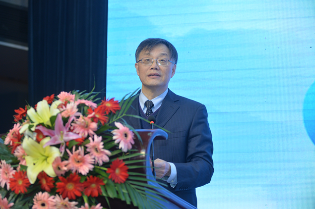 山东大学齐鲁医学院党工委书记刘洪渭讲话。他介绍了山东大学在118年办学历史、办学特色,他向与会代表介绍了山东大学药学教育取得的成效,表示将不断提高教育教学水平和人才培养质量,不断推动山东大学“双一流”建设水平。